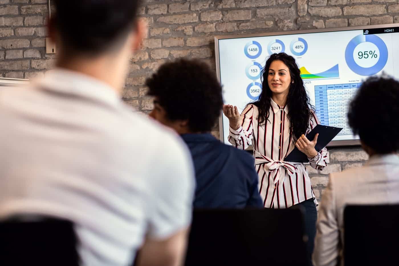 Tecnologia integrata: palco, schermi LED, proiettori, microfoni wireless e un’acustica impeccabile in ogni punto della sala.